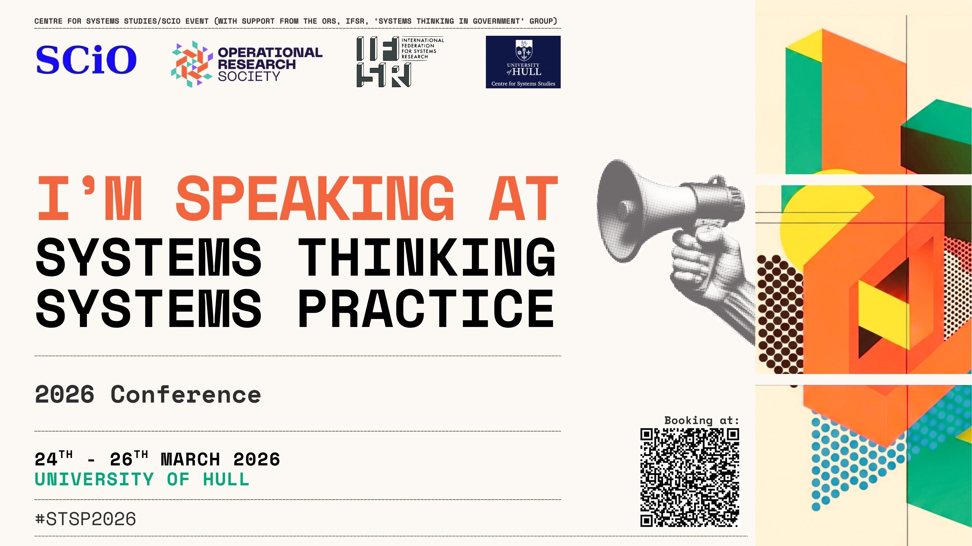 I'll be discussing some of these ideas in the my talk, "𝐒𝐲𝐬𝐭𝐞𝐦𝐬 𝐏𝐫𝐚𝐜𝐭𝐢𝐜𝐞 𝐟𝐨𝐫 𝐂𝐲𝐛𝐞𝐫𝐬𝐞𝐜𝐮𝐫𝐢𝐭𝐲 𝐏𝐫𝐨𝐟𝐞𝐬𝐬𝐢𝐨𝐧𝐚𝐥𝐬" at the Systems Thinking Systems Practice Conference at the University of Hull.